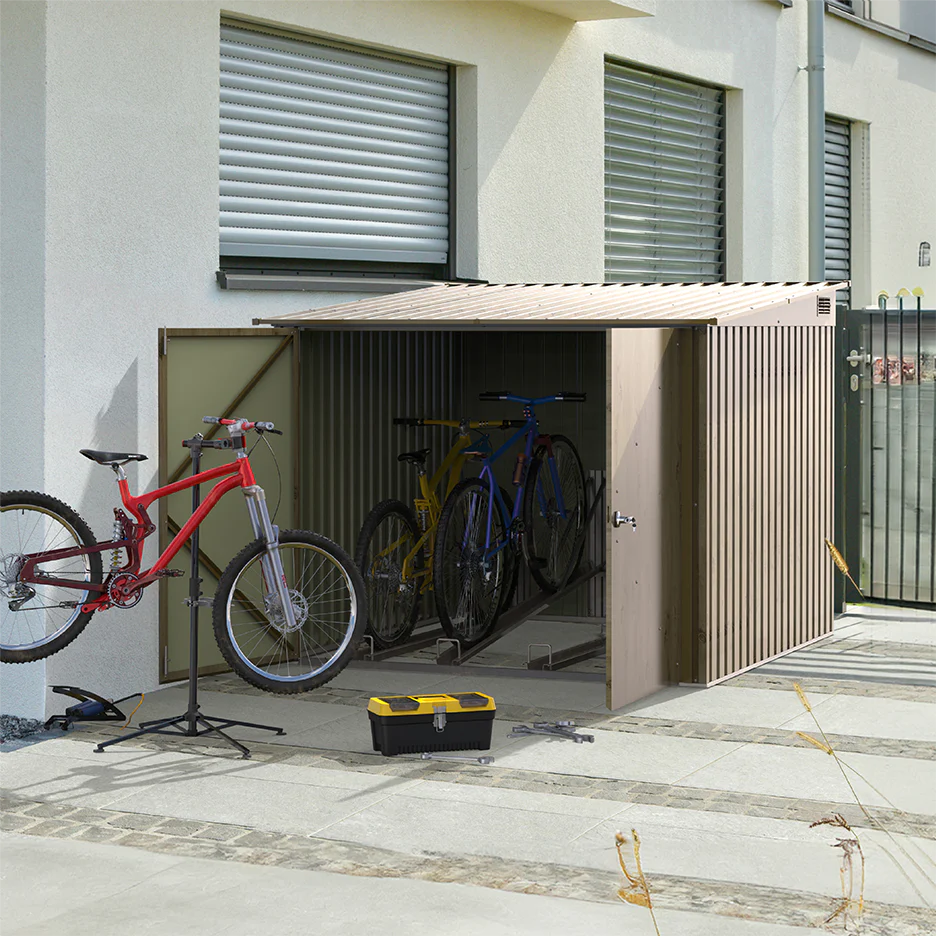 Maximize your living space and protect your bikes from harsh weather conditions with our Bike Storage Steel Shed for 2 Bikes. Its sleek design enhances any outdoor space, while providing a safe and secure home for your bikes. Enjoy added convenience with easy access to your bikes whenever you're ready to ride. Invest in the Bike Storage Steel Shed and take your cycling experience to the next level.