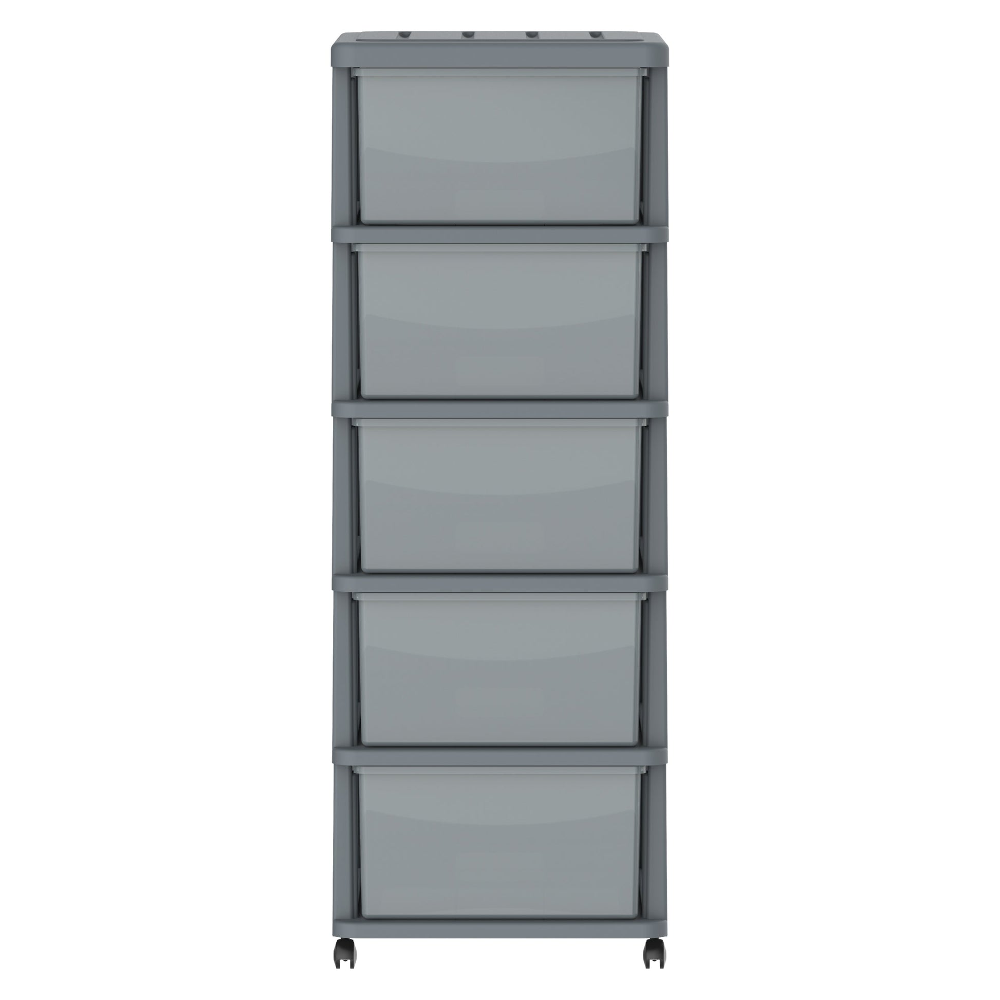 Cedargrain 5 Tiers Storage Cabinet with Drawers & Wheels